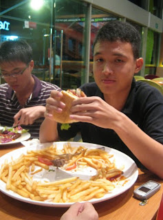 anw yea rujun finally finished like an hour later. i really don't know whether to be proud of him or utterly disgusted of him la. i mean, its like 50-50 la hahahah. its so piggish, but yet i'm half in awe. D: its really quite an achievement what.